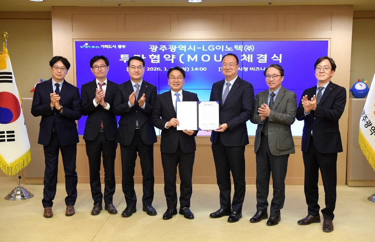 [뉴스서울] 광주광역시와 LG이노텍은 13일 시청 비즈니스룸에서 ‘차량용 제어모듈 신규 생산라인 구축을 위한 투자협약’을 체결했다. 이번 협약은 2026년 새해 부강한 광주로의 힘찬 도약을 알리는 첫 신호탄이다.