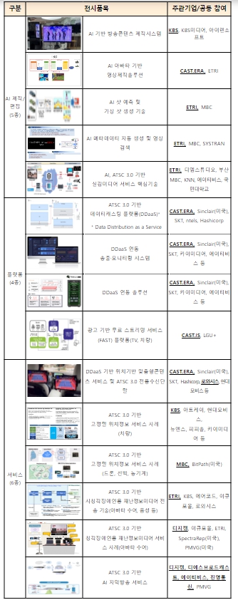 특히, 이번에는 싱클레어(美방송미디어그룹)와 SK텔레콤, LGU+, 현대모비스 등이 참여하여 고효율 데이터 방송 플랫폼(DDaaS)과 고정밀 위치정보서비스(Enhanced GPS) 등 새로운 방송미디어 기술과 서비스를 선보이며,자율주행차량, 도심항공교통(UAM) 등 모빌리티 환경에 맞게 진화하는 방송미디어 시장을 선점하기 위한 국내 기업의 우수한 기술들을 적극 홍보하고 있다.