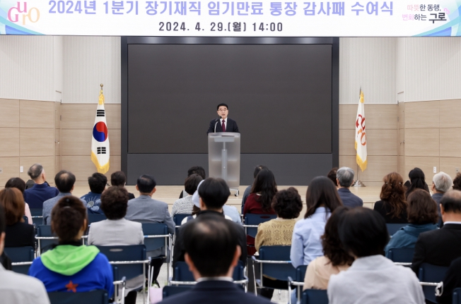 문헌일 구로구청장은 “그동안 동의 최일선에서 애정과 열정으로 주민들을 위해 헌신적으로 봉사와 노력을 해주셔서 감사드린다”며 “앞으로도 우리 구에 애정을 가져주시길 바란다”고 인사말을 전하고 통장에게 감사패를 전달했다.