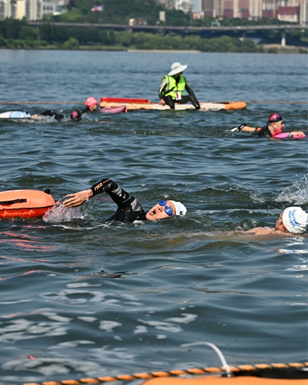 [뉴스서울] 오세훈 서울시장이 지난 1일 뚝섬한강공원에서 열린 「제1회 쉬엄쉬엄 한강 3종 축제」에 참여해 시민들에게 마음 편히 수영할 수 있는 한강의 깨끗한 수질을 알리는 데 앞장선 가운데, 2일에는 ‘수영’ 상급자 코스인 잠실수중보 남단에서 북단까지 한강 1km를 시민들과 함께 종단했다.