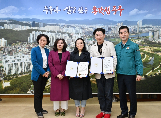 이날 김영길 중구청장은 최미경, 김창희(에이든 김) 작가에게 고마움의 뜻을 담아 미술작품 기증증서를 전달했다.