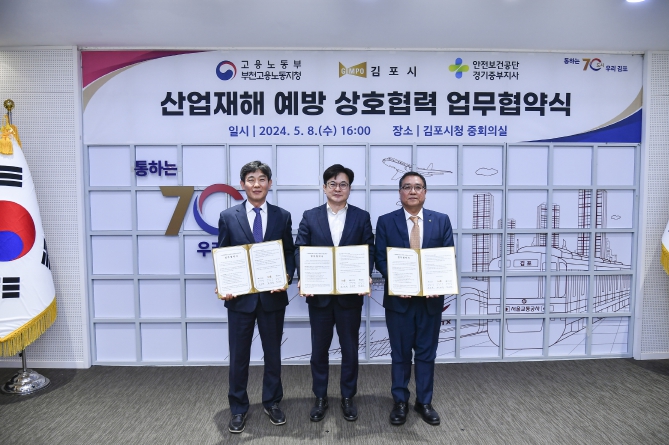 [뉴스서울] 김포시는 지난 8일 고용노동부 부천고용노동지청, 한국산업안전보건공단 경기중부지사와 산업재해 예방을 위한 업무협약을 체결했다.