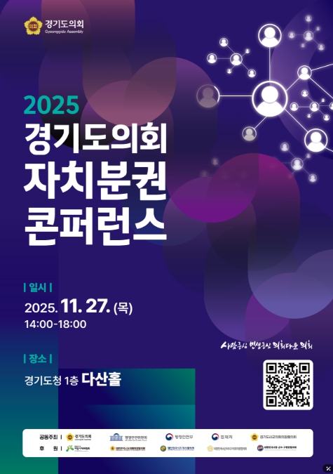[뉴스서울] 경기도의회가 진정한 자치분권 실현에 대한 사회적 공감대 확산과 향후 지방자치의 발전 방향 모색을 위한 '2025 경기도의회 자치분권 콘퍼런스'를 오는 11월 27일 목요일 경기도청 다산홀에서 개최한다.