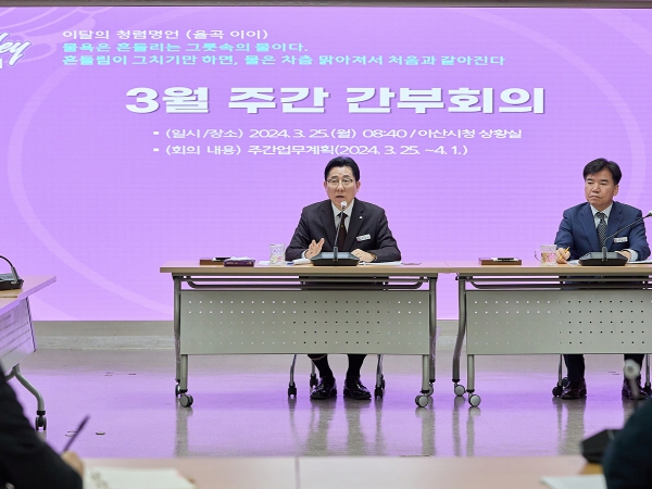 한편 이날 회의에서는 아트밸리 아산 제63회 성웅 이순신 축제 홍보, 봉재저수지 제방 하부 공간 주차장 조성, 관내 일부 수변공간 악취 문제 해결 방안, (재)헬스케어스파산업진흥원 재정자립도 향상 방안 등이 논의됐다.