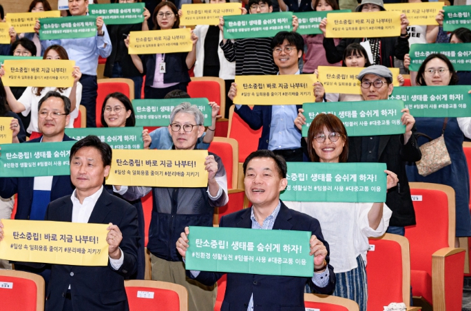 이재준 시장과 참석자들이 함께 ‘탄소중립! 생태를 숨 쉬게 하자!’, ‘탄소중립! 바로 지금 나부터!’라는 구호를 외치는 것으로 기념식은 마무리됐다.