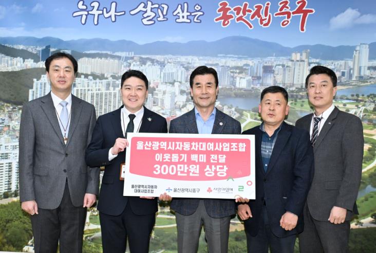이날 전달식에는 김영길 중구청장과 백승재 울산광역시자동차대여사업조합 이사장 등이 참석했다.
