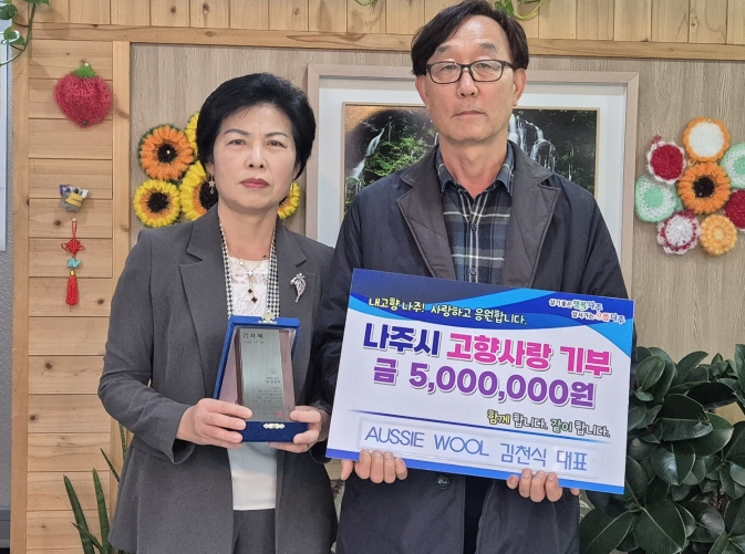 [뉴스서울] 전라남도 나주시는 어시울(AUSSIE WOOL) 김천식 대표가 고향사랑기부금 500만원을 기탁했다고 25일 밝혔다.