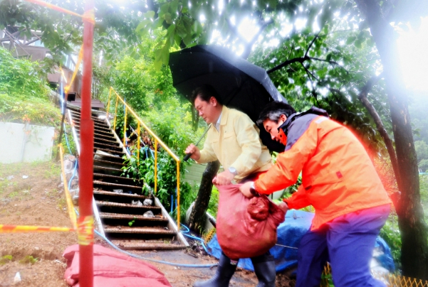 이날 이 구청장은 집중호우로 인한 산사태 발생 지역 및 도시개발 현장 등을 직접 방문해 피해 및 안전 상황을 점검했다.