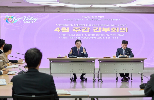 이외에도 박 시장은 ▲직원복지 차원 시청 옥상 활용계획 수립 ▲시정뉴스(e북) 온라인 활성화 방안 마련 ▲관내 기업 대상, 중국 동관시 투자유치 설명회 참여 안내 ▲미8군 신임 사령관에 이순신 축제 초청장 발송 ▲선거철 기습 불법 현수막 관리 철저 ▲공약사업 추진 상황 점검 및 추경안 반영 사안 발굴 ▲성웅 이순신 축제 계기 홍보(셔틀버스 이용법 책자 및 동영상 홍보) 등을 당부했다.