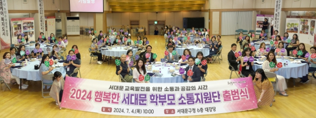 [뉴스서울] 서대문구는 최근 구청 대강당에서 ‘서대문 교육 발전을 위한 소통과 공감의 시간’이란 주제로 ‘2024 행복한 서대문 학부모 소통지원단 출범식’을 가졌다고 8일 밝혔다.
