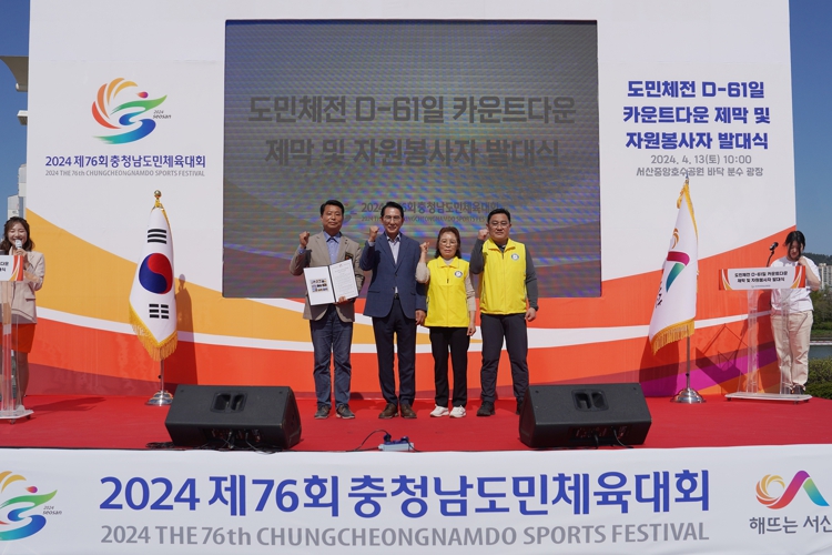 시는 13일 올해 6월 13일부터 16일까지 지역에서 개최되는 ‘제76회 충청남도민체육대회’의 성공적인 운영을 다짐하기 위해 ‘도민체전 D-61일 카운트다운 제막식 및 자원봉사자 발대식’을 열었다고 밝혔다.