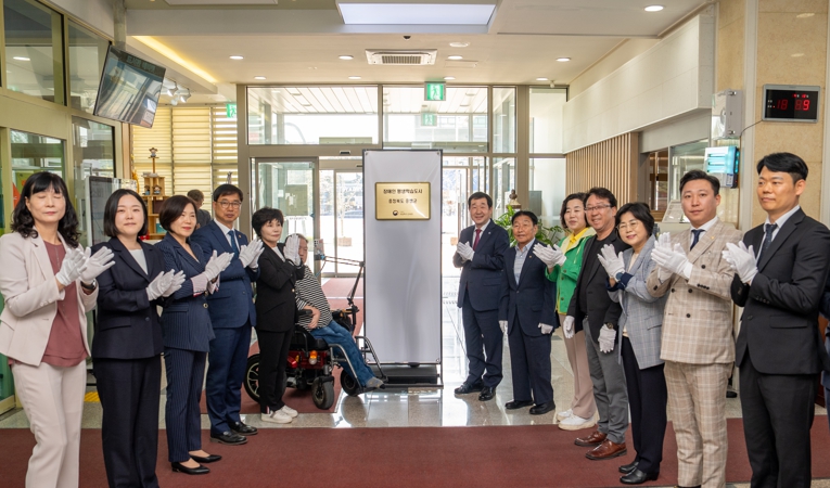 평생학습관이 위치한 증평군립도서관의 개관 10주년 기념행사에 앞서 진행된 이날 행사에는 이재영 군수, 이동령 군의장 및 장애인 관련 기관·단체장 등이 참석했다.