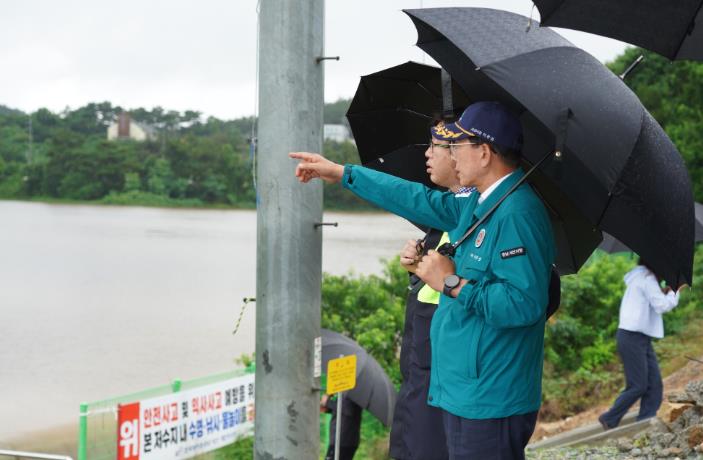 이 시장은 대산읍 물안저수지의 수위가 높아져 범람할 우려가 예견됨에 따라 직접 현장을 방문해 상황을 점검했다.