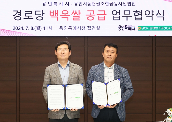 [뉴스서울] 용인특례시는 이달부터 지역 내 모든 경로당에 용인에서 생산하는 ‘백옥쌀’을 지원키로 하는 업무협약을 용인시농협쌀조합공동사업법인과 맺었다고 8일 밝혔다.