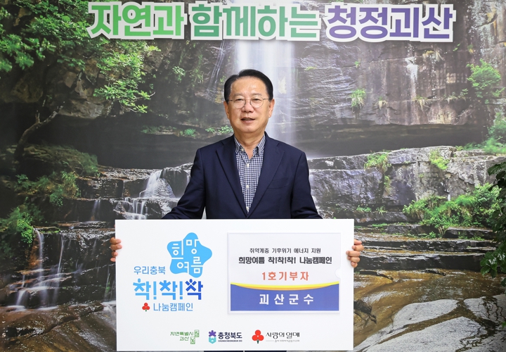 [뉴스서울] 송인헌 괴산군수가 1일 기후위기 속 취약계층의 에너지 지원을 위한 ‘희망여름 착!착!착! 나눔캠페인’에 괴산군 1호로 성금을 기부했다.
