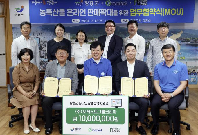 [뉴스서울] 장흥군은온라인 쇼핑몰 G마켓, 포레스트 그룹 코리아와 농특산물 판매 확대를 위한 업무협약을 체결했다.