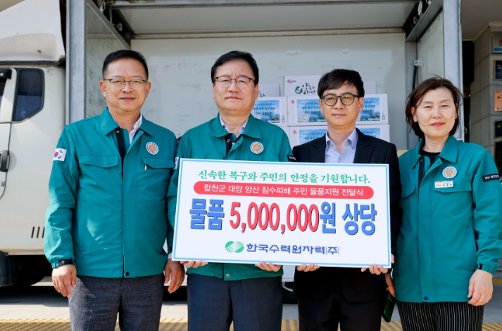 [뉴스서울] 한국수력원자력(주)은 17일 합천군을 방문해 지난 5, 6일 집중호우로 피해를 입은 대양면 양산리 주민을 위한 5백만원 상당의 물품을 전달했다.