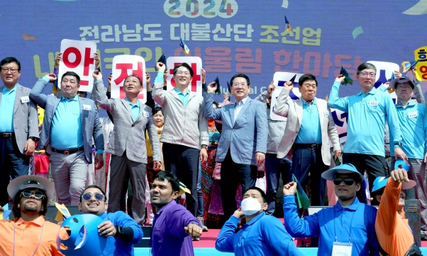 김영록 지사는 격려사를 통해 “HD현대삼호, 대한조선, 양대 기업과 협력사들이 힘을 합해 세계 1위의 대한민국, 전남의 조선산업을 이끌고 있다”며 “친환경선박 클러스터, 스마트 물류 플랫폼, 전선 지중화 등을 통해 조선업의 경쟁력을 높이고, 해상풍력 생태계를 조성해 사업 다각화를 이뤄 나가겠다”고 밝혔다.
