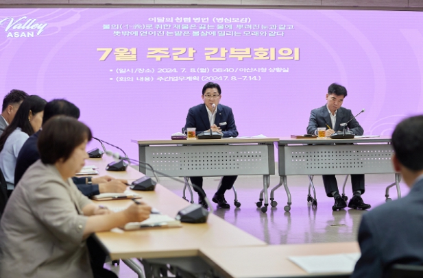 이와 함께 ▲우기 동안 기상예보(시간별, 지역별 강수량) 및 하천 용수량 일별 점검 ▲배방공수1지구 전략환경영향평가 주민설명회 관련부서 직원 배석 ▲역 광장 금주구역 점검 및 관문 품격에 맞는 경관 조성 ▲통합RPC 업무협약 사후 조치 파악 ▲배방 월천지구 진입로 등 호우 대비 도로시설물 점검 및 조치 ▲강당골 여름철 불법 영업행위 집중단속 ▲‘산길따라 삼백리’ 하이킹코스 연결 및 홍보 ▲시 제공 자료 내 개인정보 관리 철저 등을 주문했다.