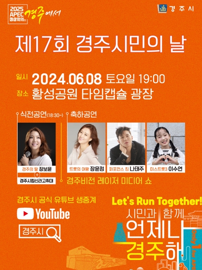 주낙영 경주시장은 “이번행사를 통해 시민들이 자부심을 느끼고, 경주의 밝은 미래를 함께 그려보는 뜻깊은 자리가 될 것으로 기대한다”며 “특히 2025 APEC 정상회의 경주 유치를 위해 마지막까지 시민과 함께 최선을 다하겠다”고 밝혔다.