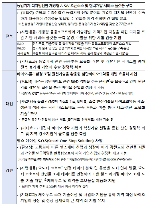 ▲ 강원, 대전, 전북 제안사업 개요 |