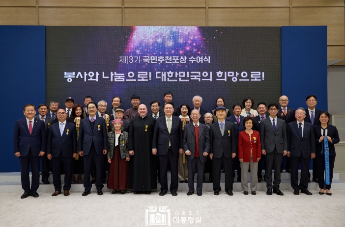 [뉴스서울] 윤석열 대통령은 3월 15일 용산 대통령실에서 국민들이 추천해 공로자로 선정된 수상자들을 초청해 ‘제13기 국민추천포상 수여식’을 개최했다.