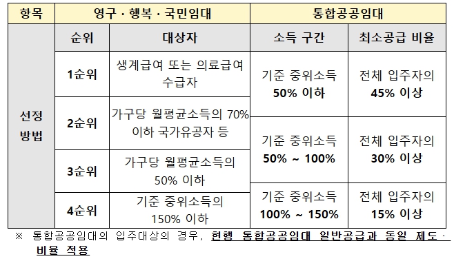 ▲ 고령자복지주택 유형별 입주자 선정방법 |