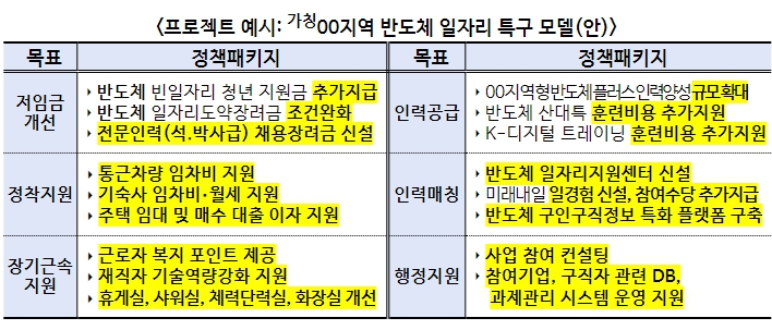 임금‧복지 지원, 기업환경개선 등을 포괄하는 패키지 지원 체계를 구축했고, 전북에서는 농식품 융복합 신성장 산업 육성을 위해 지역 대학과 연계한 전문인력 양성 및 창업 ‧ 기업지원 등 관련 지원 사업을 적극 연계한다. 정부는 프로젝트 참여 5개 지역(부산 · 인천 · 경북 · 전북 · 충북)을 ’24년 지역 일자리 사업 선정 시 적극 우대해 268억원*의 예산을 투입하고, 이를 통해 지역 주민과 기업이 실질적으로 체감할 수 있도록 정책의 성과를 높여 지역 인구 정주 및 지역 경제 성장에 기여할 계획이다.
