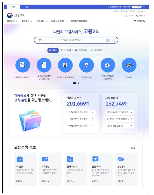 조정숙 고용지원정책관은 “이번 개편은 단순한 화면 변경이 아니라, 지난 1년간의 이용 데이터와 국민 의견을 반영한 맞춤형 개선”이라며, “국민이 체감할 수 있는 취업지원 서비스 제공을 위해 오는 9월에는 고용24에 인공지능(AI)에 기반한 맞춤형 구인‧구직 대국민 서비스 4종을 개시하여 구인‧구직 편의성과 일자리 매칭 효율성을 높여나갈 것”이라고 밝혔다.