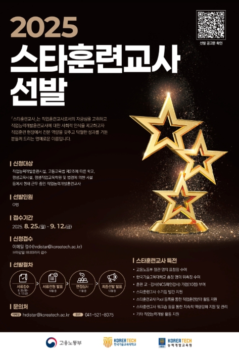 ▲ 한국기술교육대학교 능력개발교육원 주관‘2025년 스타훈련교사 모집’포스터 |