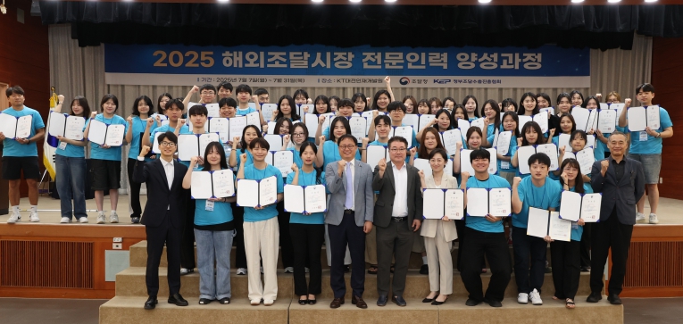 [뉴스서울] 조달청(차장 백승보)은 KT 대전인재개발원에서'2025년도 해외조달시장 전문인력 양성 과정'의 수료식을 개최하고 총 60명에게 수료증을 수여했다.