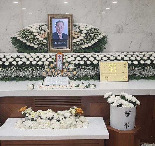▲ 추서단증이 놓여진 故 이승국 전 한국체육대학교 총장의 빈소 모습 |
