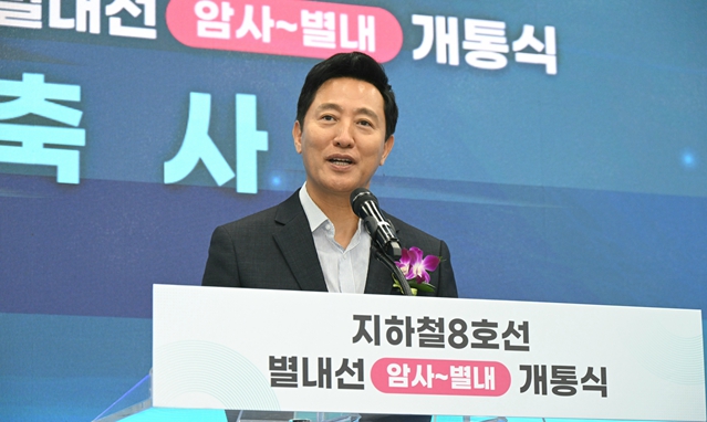 [뉴스서울] 오세훈 서울시장이 9일 14시, 별내역 대합실에서 열린 ‘8호선 연장(별내선) 개통식’에 참석했다.