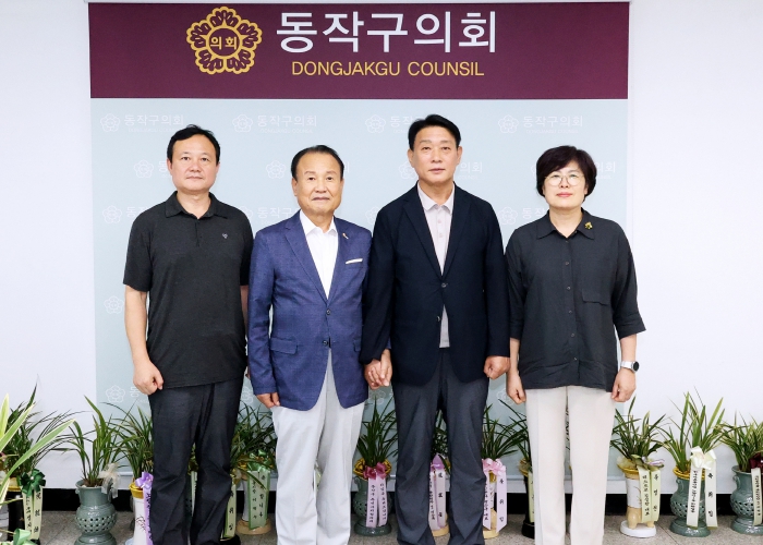 ▲ (사진 왼쪽에서 두번째) 이진택 동작구재향군인회장, (세번째) 정재천 의장 |