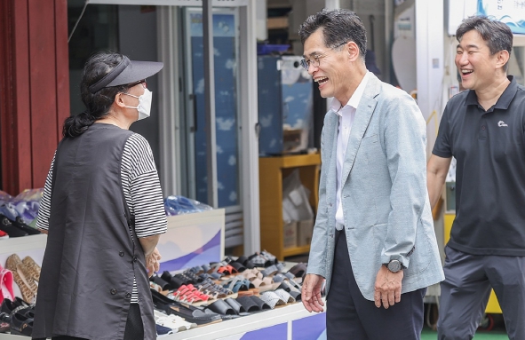 ▲ 양천구, 목동깨비시장에서 소상공인과 이야기 나누는 이기재 양천구청장 |