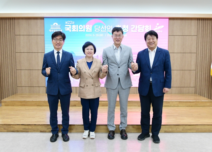 [뉴스서울] 안산시는 28일 오전 시청 제1회의실에서 제22대 국회의원 지역구 (갑·을·병) 당선인 3명을 초청해 첫 간담회를 개최했다고 밝혔다.