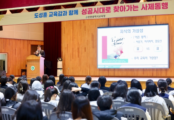 [뉴스서울] 도성훈 인천광역시교육감은 인일여자고등학교 1, 2학년 학생 400여 명을 대상으로 ‘성공시대로 찾아가는 사제동행’을 11일 진행했다.