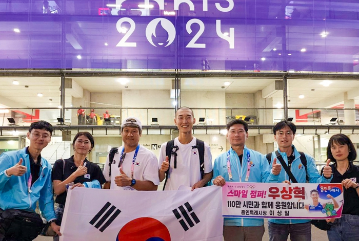 [뉴스서울] 이상일 용인특례시장과 시 대표단은 10일 오후(프랑스 파리 현지시각, 한국 시각 11일 새벽) 파리 올림픽 육상 높이뛰기 결선에 나선 용인특례시 소속 우상혁 선수(28)를 응원하고, 경기가 끝난 뒤 우 선수를 만나 격려했다.
