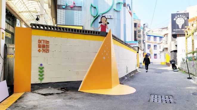 추가로 골목길 곳곳에 입구 안내 바닥 동판과 반사경, 벤치 등을 설치했다.