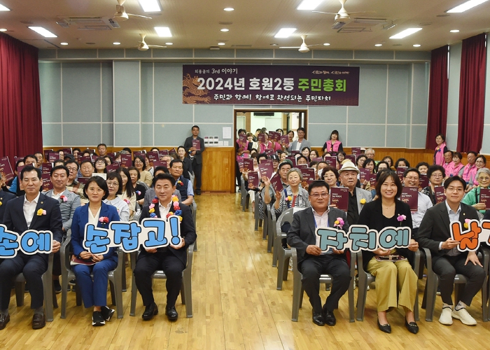 주민센터 4층 대회의실에서 열린 이번 행사에는 호원2동 주민을 비롯해 시장, 국회의원, 도‧시의원 등 100여 명이 참석했다.