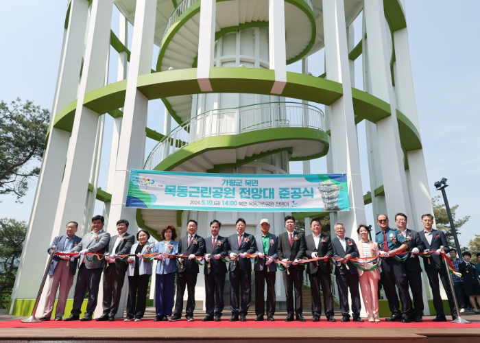 가평군은 10일 서태원 군수, 최춘식 국회의원, 최정용 가평군의회 의장과 군의원, 임광현 경기도의원, 지역 단체장과 주민 등 50여 명이 참석한 가운데 북면 목동 근린공원에서 ‘목동근린공원 전망대 준공식’을 가졌다.