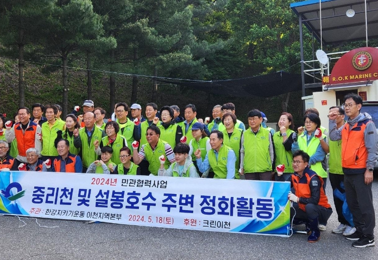 이날 정화활동에는 김경희 이천시장과 신용백 한강 본부장, 이현호 전 경기도의원, 홍성경 이천시향토협의회 역대회장과 문석기 크린이천 봉사단 단장 등 60여 명이 참여했다.