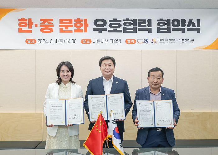 [뉴스서울] 시흥시는 4일 시청 다슬방에서 시흥문화원, (사)한중문화우호협회와 함께 ‘한ㆍ중 문화 우호 협력 협약’을 체결했다.