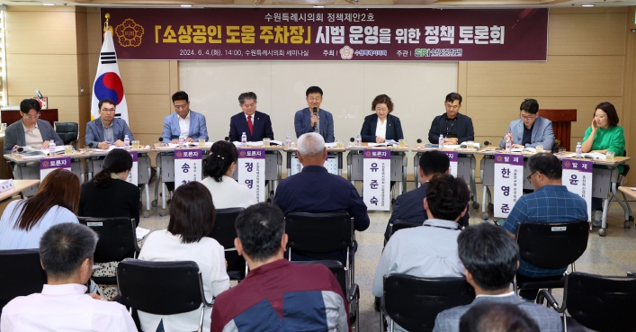 [뉴스서울] 수원특례시의회는 4일 의회 세미나실에서 수원시의회 주최, 수원시정연구원 주관으로‘소상공인 도움 주차장’ 시범 운영을 위한 정책 토론회를 개최했다.