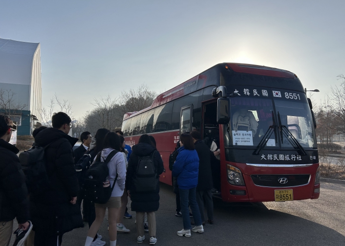 | ▲ 김포시에서 지원한 차량에 탑승하고 있는 솔터고 학생들 |