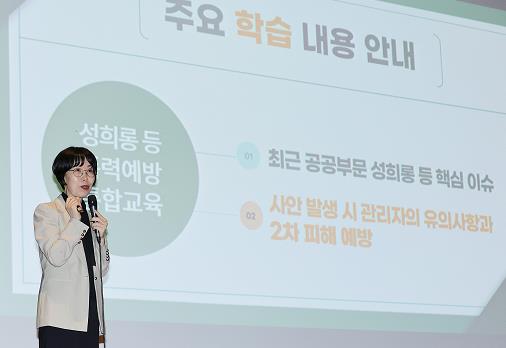 특히 ▲공공부문 성희롱 등 핵심 이슈 탐색 ▲관리자로서 성희롱 등의 경계성 인지하기 ▲피해자에 대한 성인지 감수성 ▲기관 성희롱 등 예방 지침 주요 내용 ▲실제 사건이 발생한다면 어떻게 해야 할까? ▲사건 발생 시 대응 및 2차 피해 예방 등 성희롱이 될 수 있는 행동에 대한 인식과 성희롱 사건 발생 시 체계적이고 신속하게 대처하는 것이 매우 중요하다는 점을 강조했다.