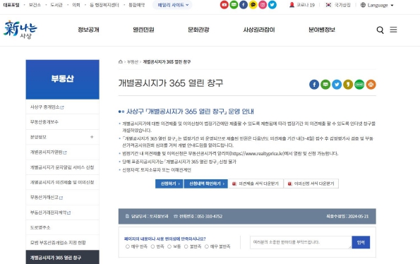 의견 제출을 원하는 구민은 구청 홈페이지(분야별정보-부동산-개별공시지가 365 열린 창구)를 통해 본인인증 후 신청하면 된다. 어르신 등 온라인으로 신청이 어려운 구민은 사상구청 토지정보과로 직접 방문해 궁금한 점들을 함께 확인하고 의견을 제출할 수 있다.