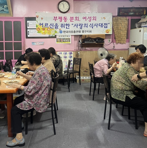 ▲ 부산 중구 부평동한국자유총연맹, 이웃사랑 어르신 식사대접 |