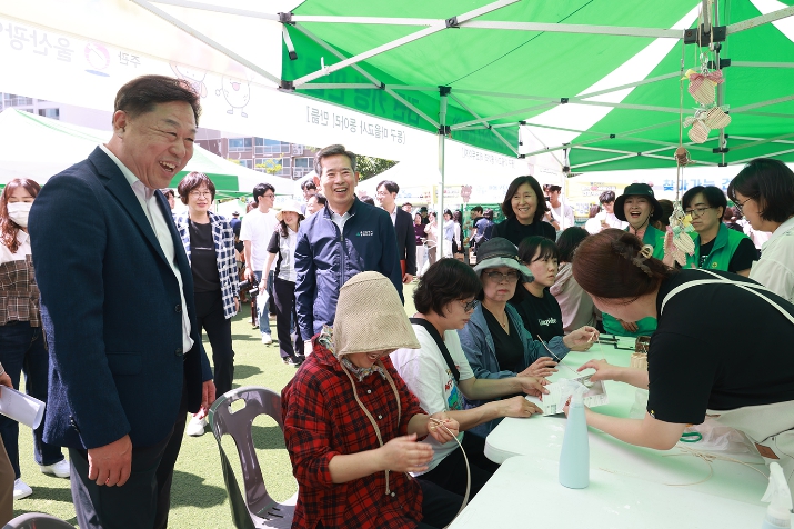 ▲ 동구는 28일 서부성원상떼빌 일원에서 OK생활민원 현장서비스의 날을 실시한 가운데 김종훈 동구청장과 안효대 울산 부시장, 박경옥 동구의회 의장 등이 참석해 행사장을 둘러보고 있다. |
