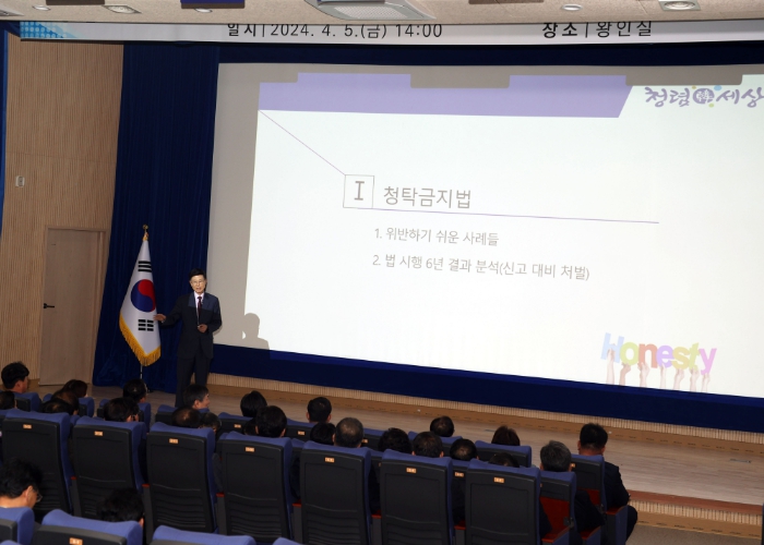 국민권익위원회 청렴교육 전문강사인 최정수 한국웃음청렴연구소 소장이 교육을 맡아 청탁금지법과 이해충돌방지법, 갑질예방 행동강령 등을 사례 중심으로 설명해 이해를 높였다.
